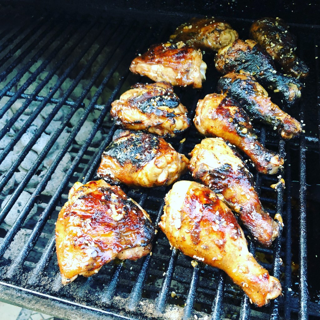 Many, many moons ago my wife and I received “Crème de Colorado,” a cookbook from the Junior League of Denver, as a wedding gift. Over the years I’ve used a lot of recipes from that cookbook. But this one, Grilled Sesame Chicken is, bar none, the best chicken recipe I make, and is always a crowd favorite. Like most of my chicken recipes, I say use the parts you like. Over time, I have found thighs and drumsticks come out the most moist. But if you have breast fans in your midst, I’ve done those a lot too and they are also delicious.